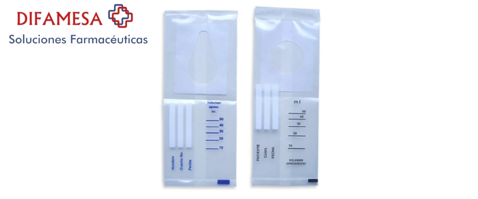 Bolsa plástica gradauada recolectora de orina para realizar urocultivo, para niño o niña.