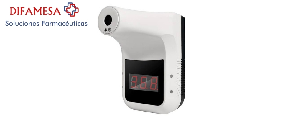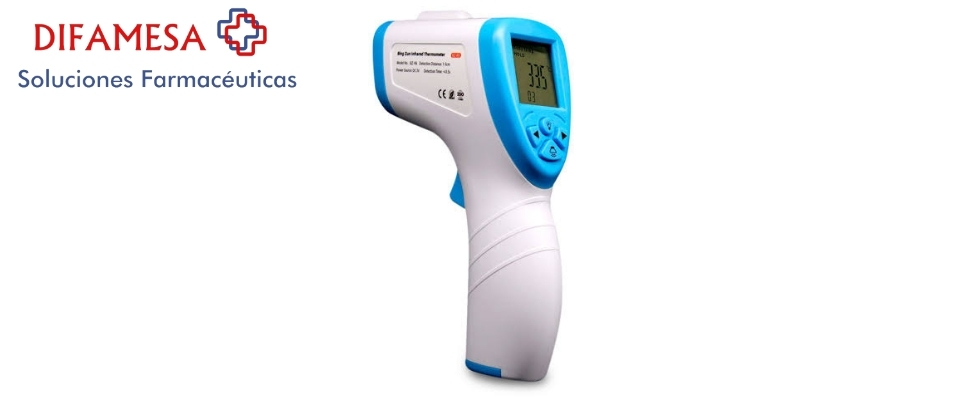 Termómetro Infrarrojo en forma de pistola que mide la temperatura a distancia sin necesidad de estar en contacto con una pantalla LCD.